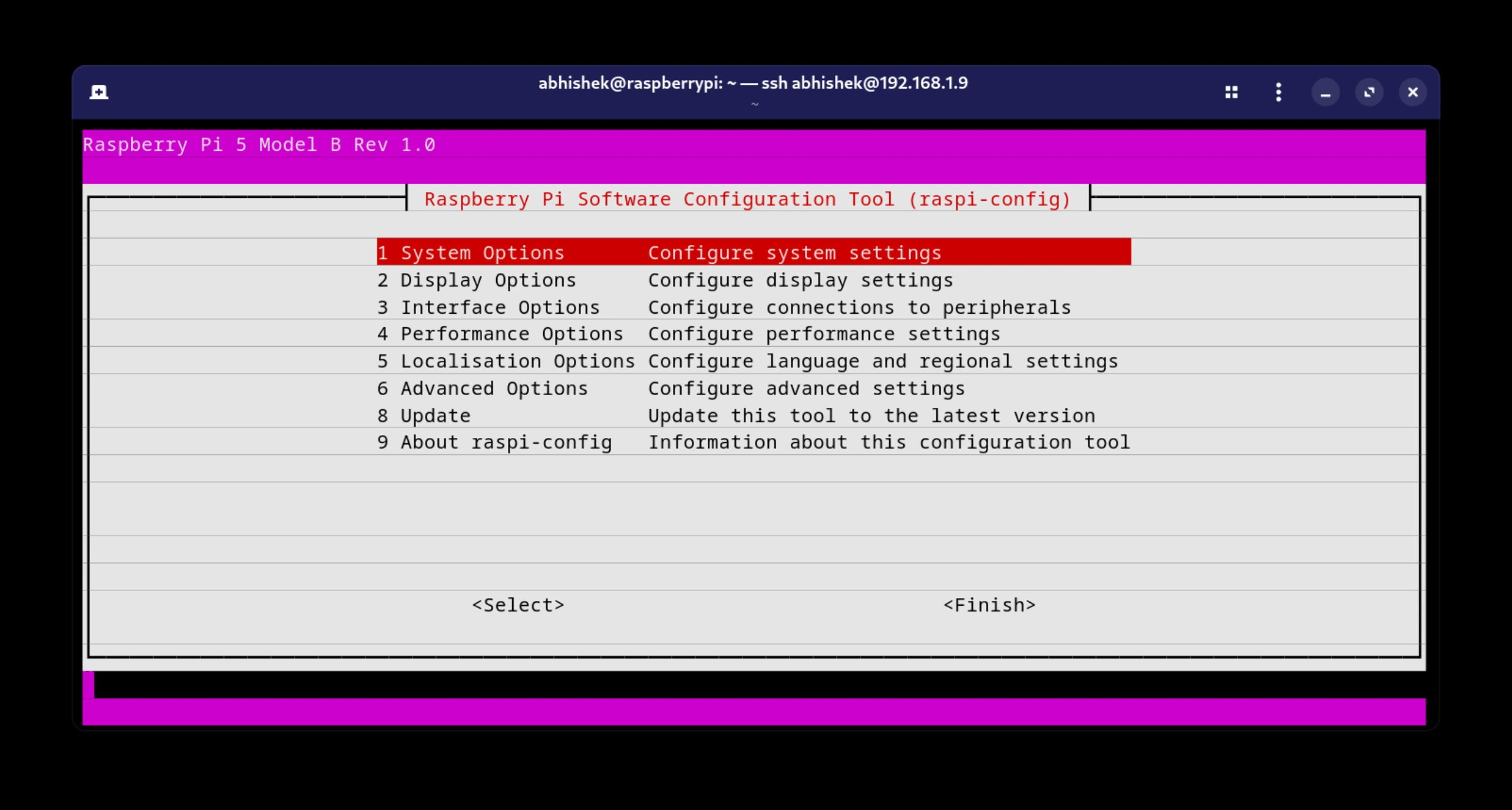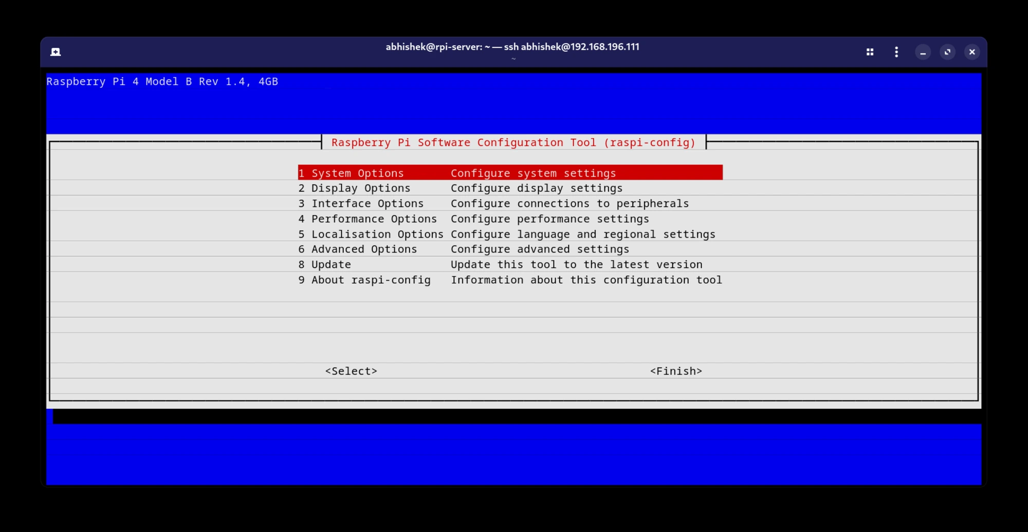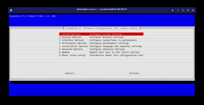 Это удобный интерфейс для настройки основных параметров, таких как имя хоста, локаль, обновления устройства, разрешение и даже включение или отключение SSH и VNC – и все это всего несколькими нажатиями клавиш.