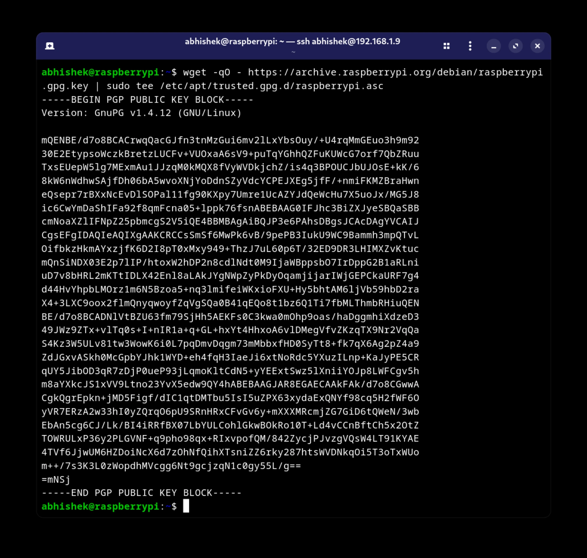 wget -qO - https://archive.raspberrypi.org/debian/raspberrypi.gpg.key | sudo tee /etc/apt/trusted.gpg.d/raspberrypi.asc