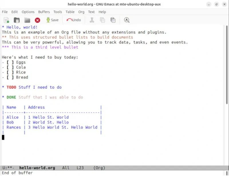 В отличие от предыдущих статей, Org Mode не является отдельным приложением для ведения заметок. Вместо этого он представляет собой удобную функцию, поставляемую с текстовым редактором Emacs. Она позволяет превращать обычные текстовые файлы в динамические цифровые органайзеры, которые позволяют делать заметки и управлять задачами.
