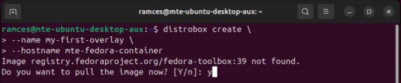 distrobox create --name YOUR-OVERLAY-NAME-HERE --hostname YOUR-CONTAINER-NAME-HERE
