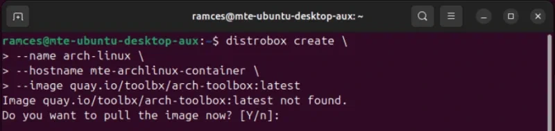 distrobox create --name arch-linux --hostname mte-archlinux-container --image quay.io/toolbx/arch-toolbox:latest