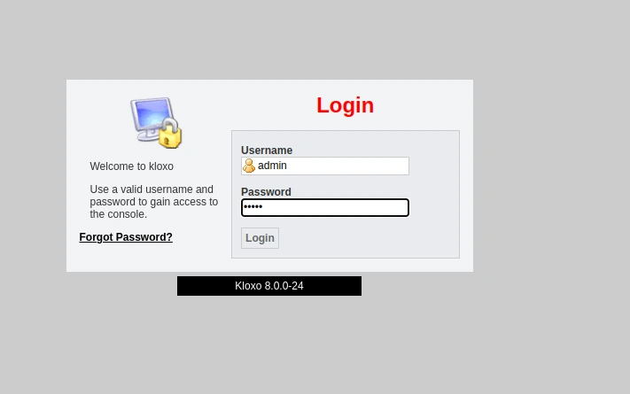 Теперь вы должны увидеть страницу входа в Kloxo, используйте имя пользователя и пароль по умолчанию для Kloxo: