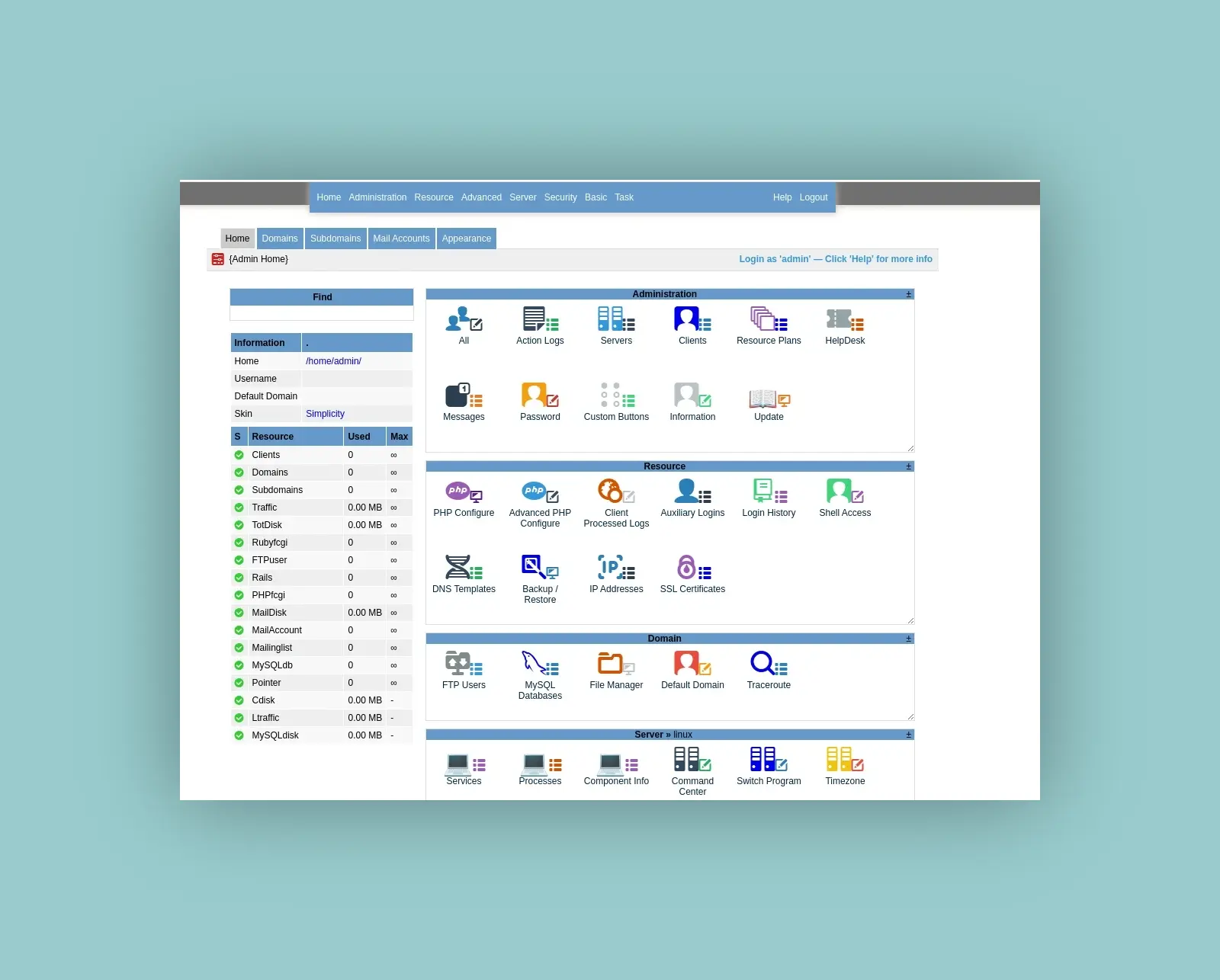 После входа в систему перед вами откроется панель управления Kloxo, где вы сможете начать управлять своим сервером и веб-сайтами.