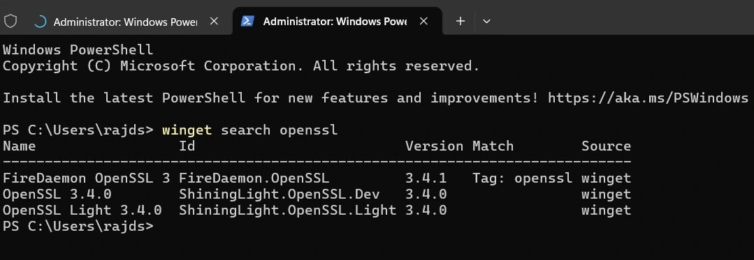 winget search openssl