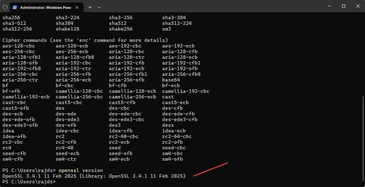 Поздравляем! OpenSSL теперь установлен в вашей системе Windows 11!