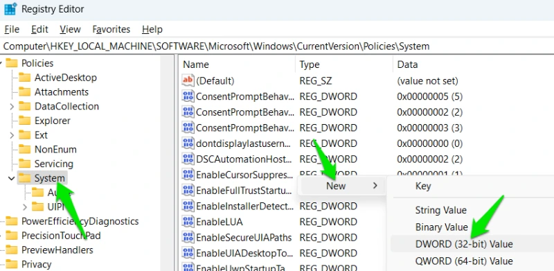 HKEY_LOCAL_MACHINE\SOFTWARE\Microsoft\Windows\CurrentVersion\Policies\System