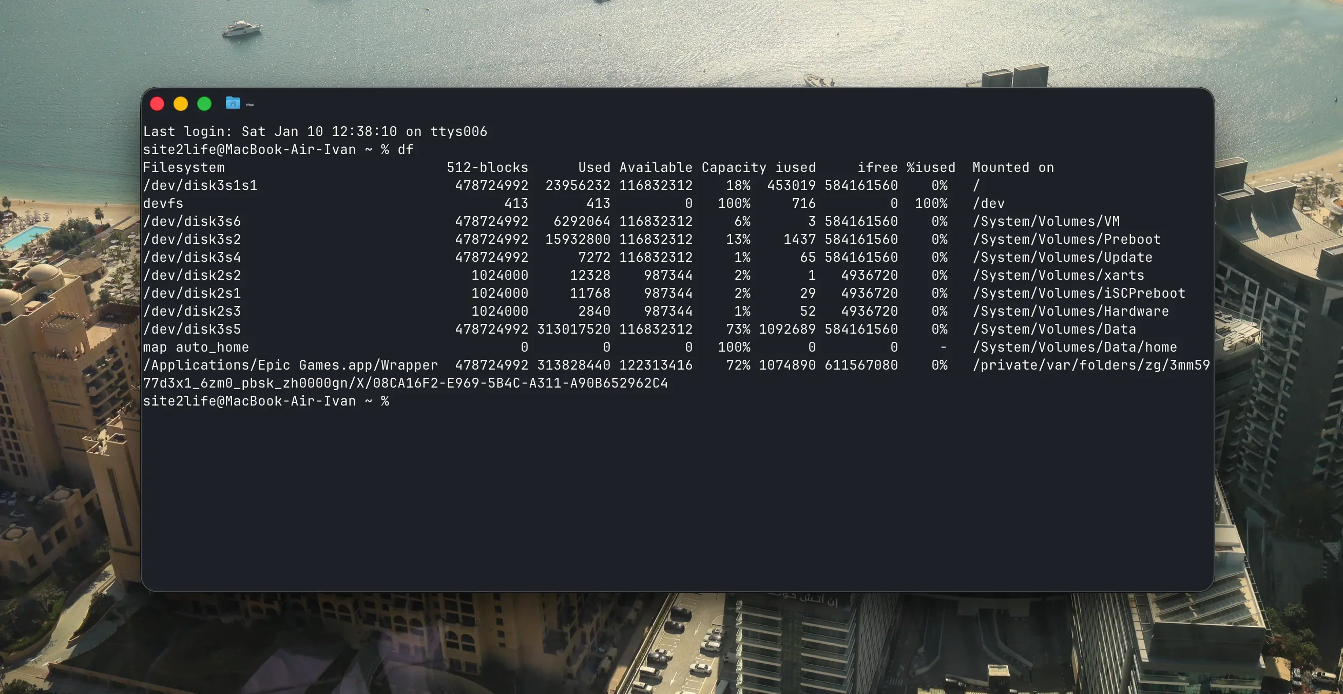 1. Выяснение имени подключенного USB-устройства с помощью команды df