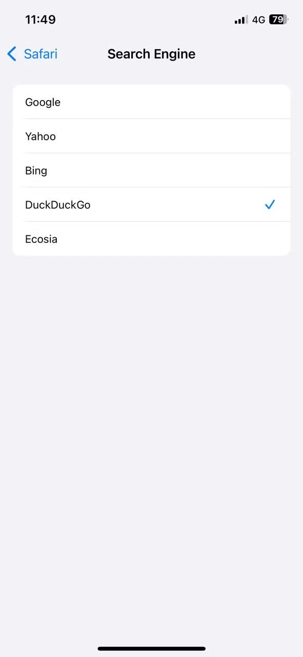 Зайдите в Настройки >> Safari >> Поисковая система. Там выберите DuckDuckGo. Это поисковая система, которая не отслеживает ваши запросы и не создает на вас профиль.