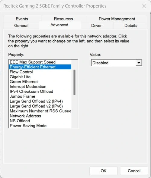 Большинство современных сетевых адаптеров и коммутаторов поставляются с включенной по умолчанию функцией EEE. Чтобы изменить эти настройки:
