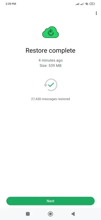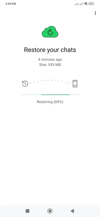 После этого вы можете продолжить настройку WhatsApp по своему усмотрению. Все ваши чаты и медиафайлы будут восстановлены, включая состояние сообщений на момент создания резервной копии.