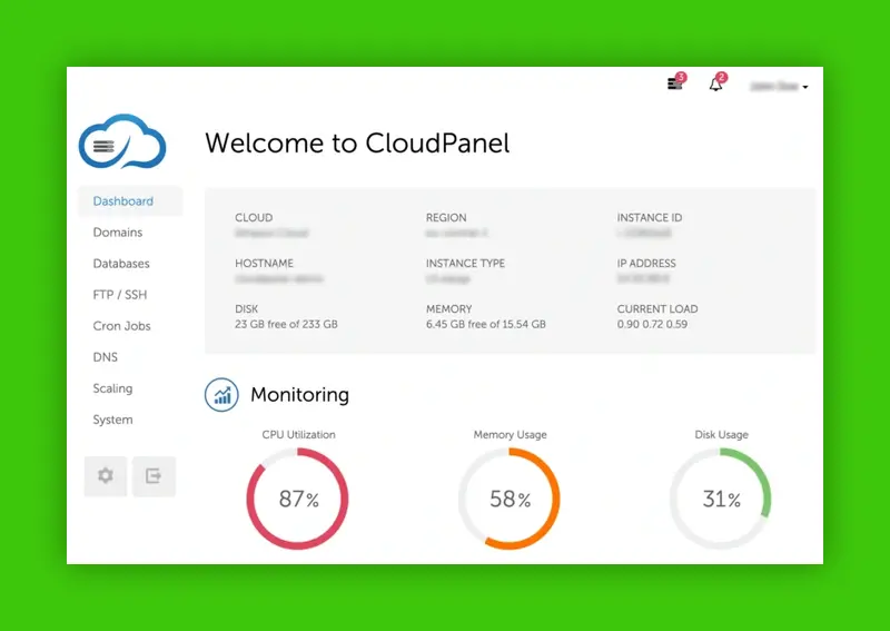 Site Settings / Site Management Vhost Editor Databases (MySQL / MariaDB) Let’s Encrypt SSL / TLS Certificates SSH / FTP Access File Manager Cron Jobs Log Viewer / Logs Dashboard with resource monitoring (CPU, Memory, Disk, Load) User & Role Management Event / Audit Logs External Database Server support Firewall rules / Security settings Cloud integration (automated backups, cloud provider access keys) Custom domain for the panel Automation / CLI tools Multiple PHP versions Basic Auth for domains IP & Bot Blocking Domain / DNS management Support for major cloud providers Multi‑language / localization