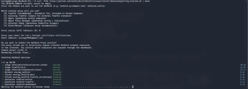 После завершения этих шагов скрипт настройки ожидает завершения инициализации сервера NetBird.