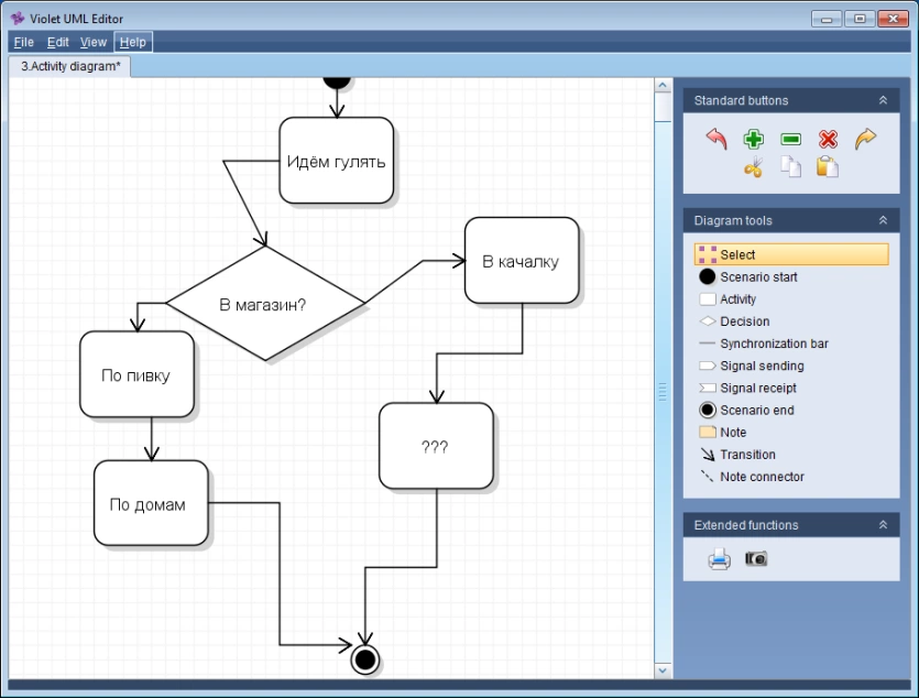 Violet предназначен для студентов, преподавателей и авторов, которым необходимо быстро создавать простые UML-диаграммы. Он не является профессиональным инструментом.