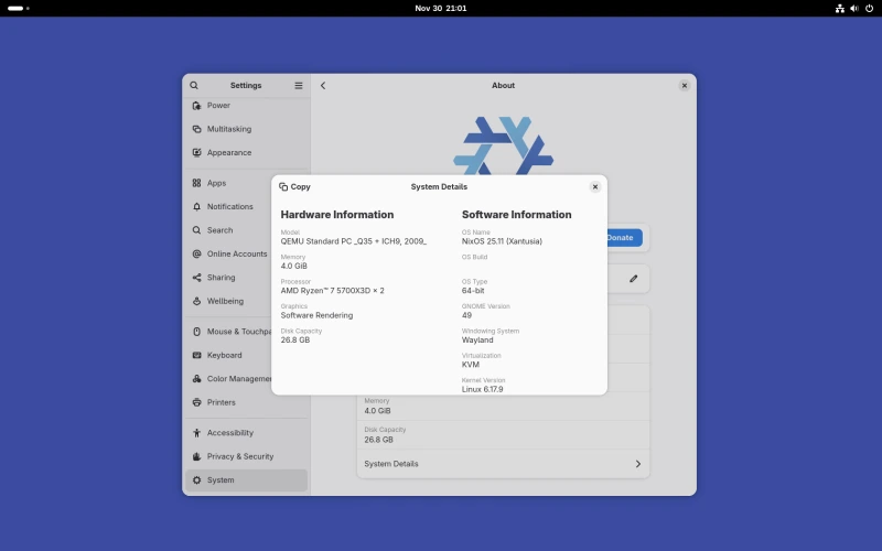 Под капотом релиз обновляет ядро до версии Linux 6.17 (также доступна версия 6.12 LTS). Что касается цепочек компиляторов, LLVM обновлен до версии 21, а GCC остался на версии 14. CMake обновлен до версии 4, что позволяет разработчикам, работающим в экосистеме Nix, использовать последние улучшения системы сборки.