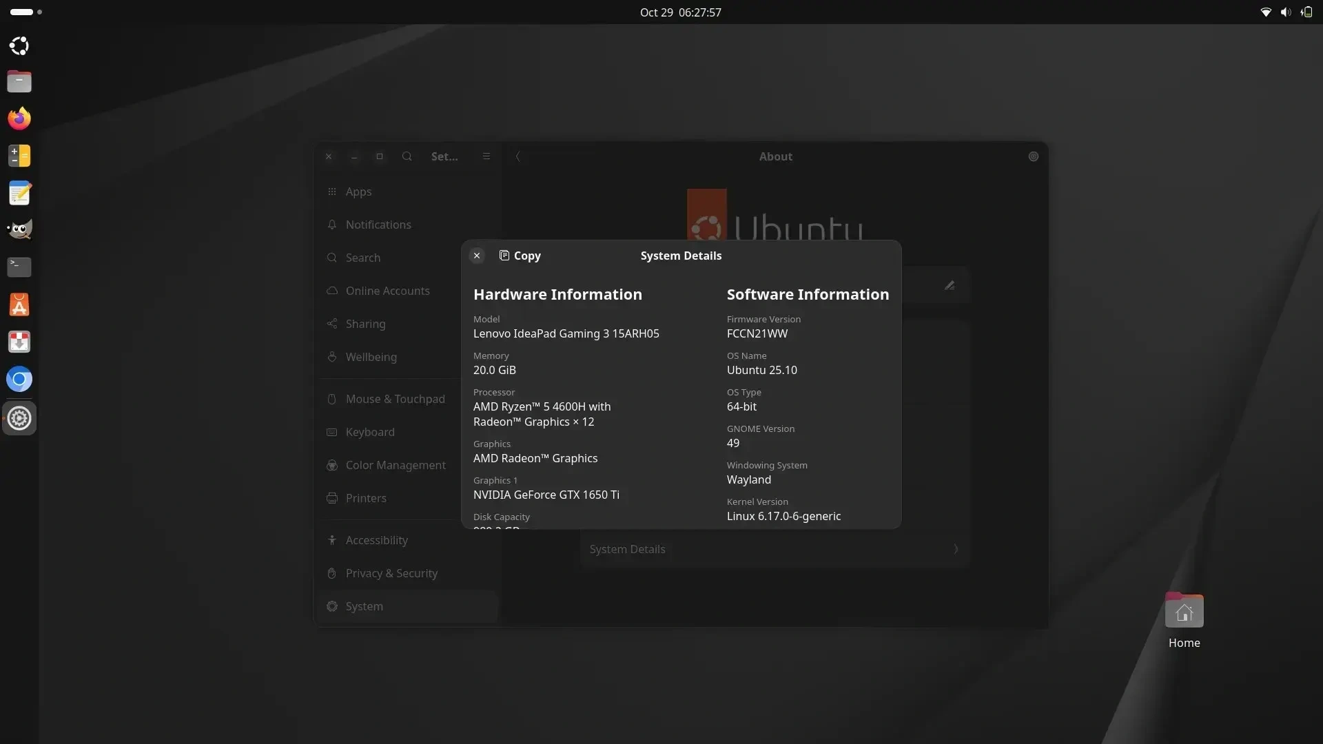 Вы должны получить уведомление о том, что Ubuntu 25.10 доступна, но вы всегда можете вручную запустить процесс обновления с помощью приложения Software Updater или через командную строку, выполнив команду update-manager -c в приложении Terminal.