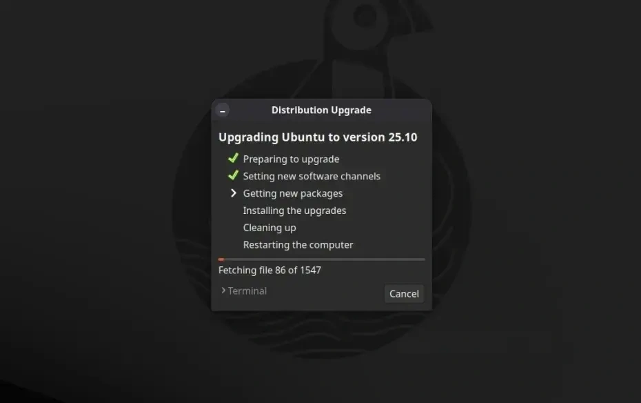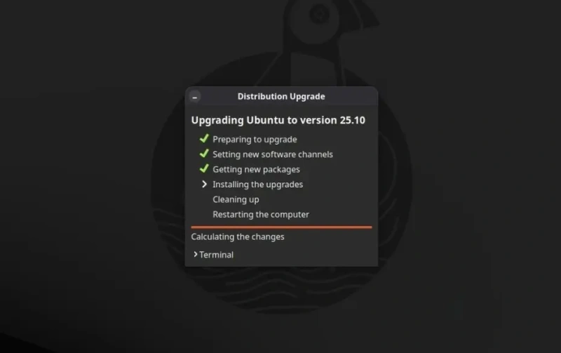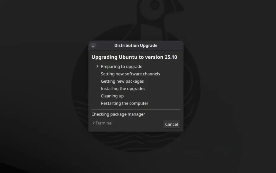 Обновление до Ubuntu 25.10 начнется. Инструмент Software Updater сначала выполнит несколько проверок…