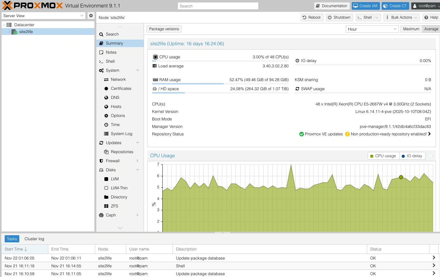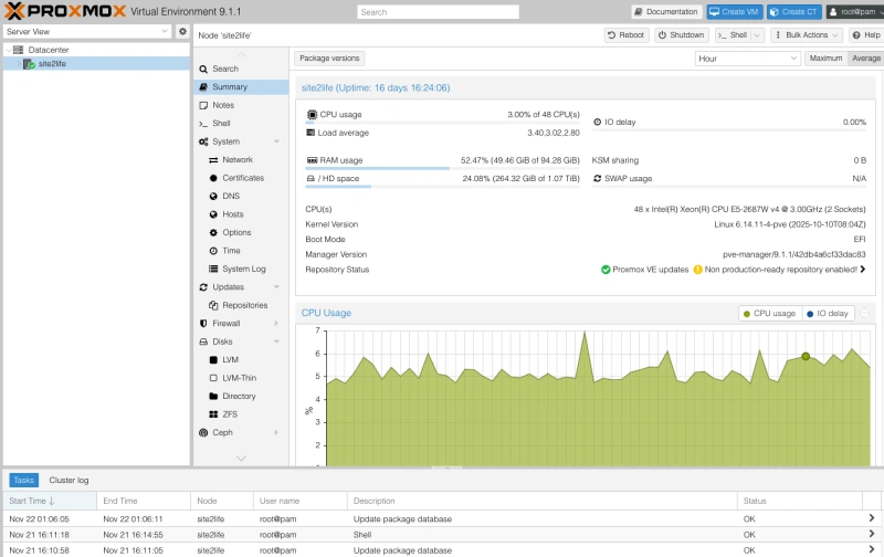 Спустя три месяца после выхода предыдущей версии Proxmox 9.0 – мощной и бесплатной платформы виртуализации с открытым исходным кодом, на которой установлено более 1,6 миллиона хостов по всему миру, представила первое обновление серии – Proxmox Virtual Environment 9.1. Релиз построен на базе Debian 13.2 Trixie и поставляется с ядром 6.17.2, qemu 10.1.2, LXC 6.0.5, ZFS 2.3.4 и Ceph Squid 19.2.3 под капотом.
