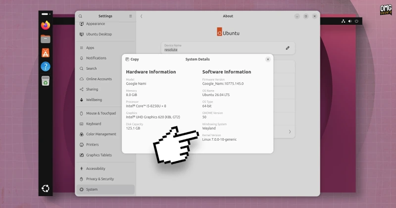 Внутри Ubuntu 26.04 поставляется с последней версией ядра Linux 7.0 и драйверами GPU с открытым исходным кодом Mesa 26.0.x. Доступен проприетарный драйвер Nvidia, теперь по умолчанию из серии 595.x.