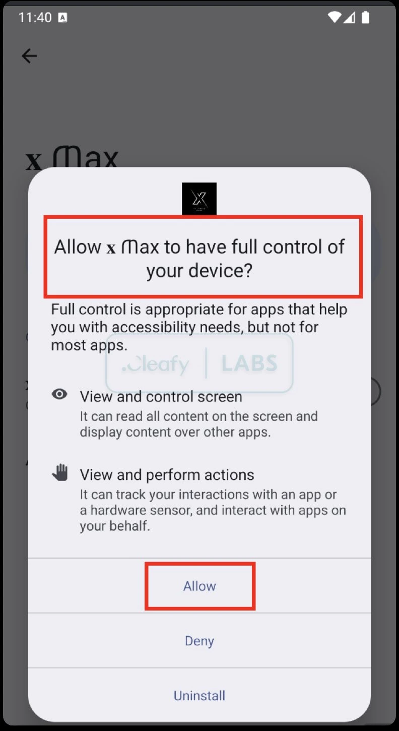Klopatra использует сервис Android Accessibility для предоставления себе дополнительных прав, перехвата пользовательских данных, имитации нажатий и жестов, а также мониторинга экрана жертвы на предмет паролей и другой конфиденциальной информации.