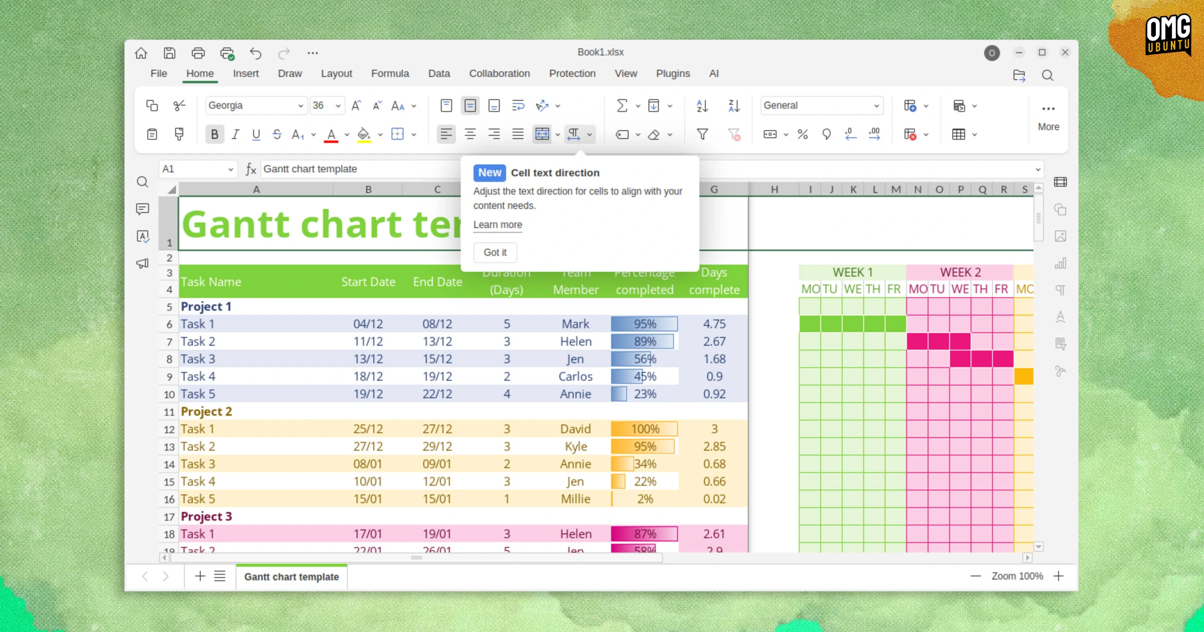 Теперь можно задавать направление текста для ячеек в документе с помощью новой кнопки «Направление текста» на вкладке «Главная». Это давняя просьба пользователей ONLYOFFICE, которые обмениваются документами с пользователями, работающими на языках, не использующих лево-правую ориентацию.